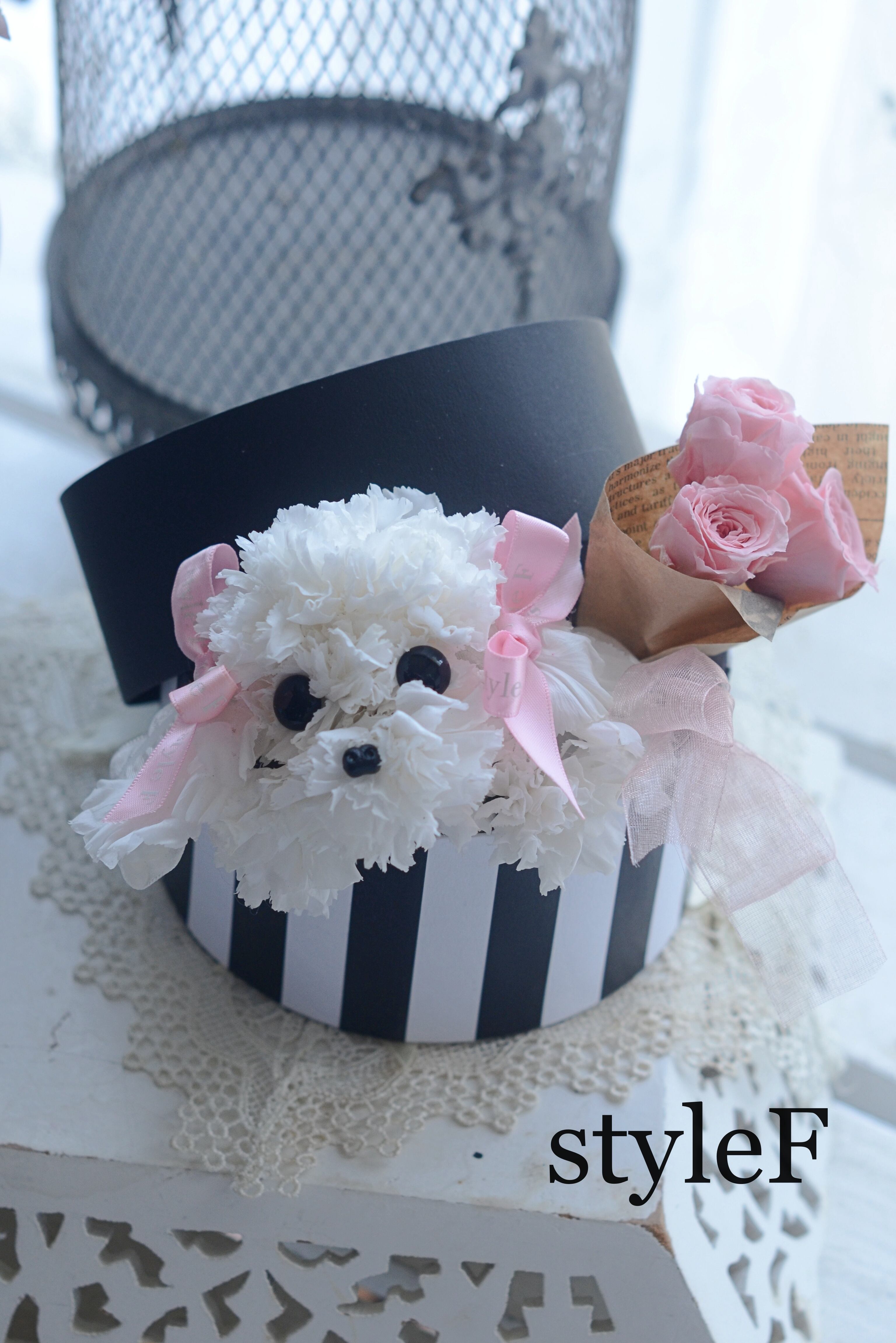 プリザーブドフラワーのカーネーション6輪を使って、プードルにデザインしました。