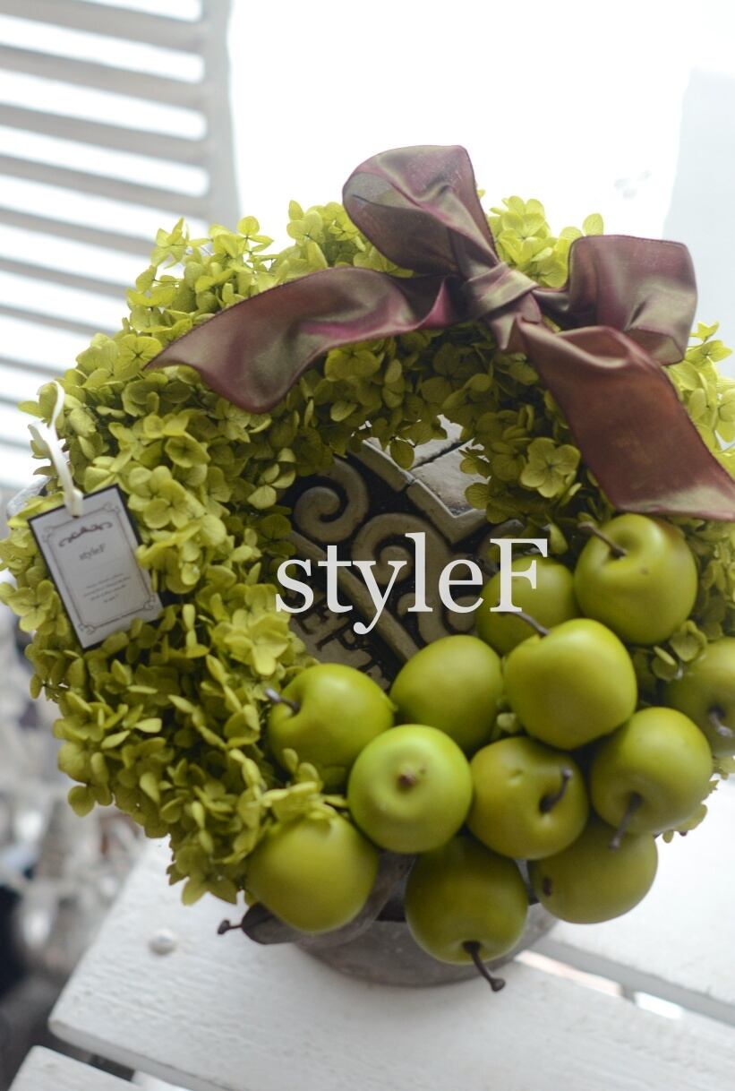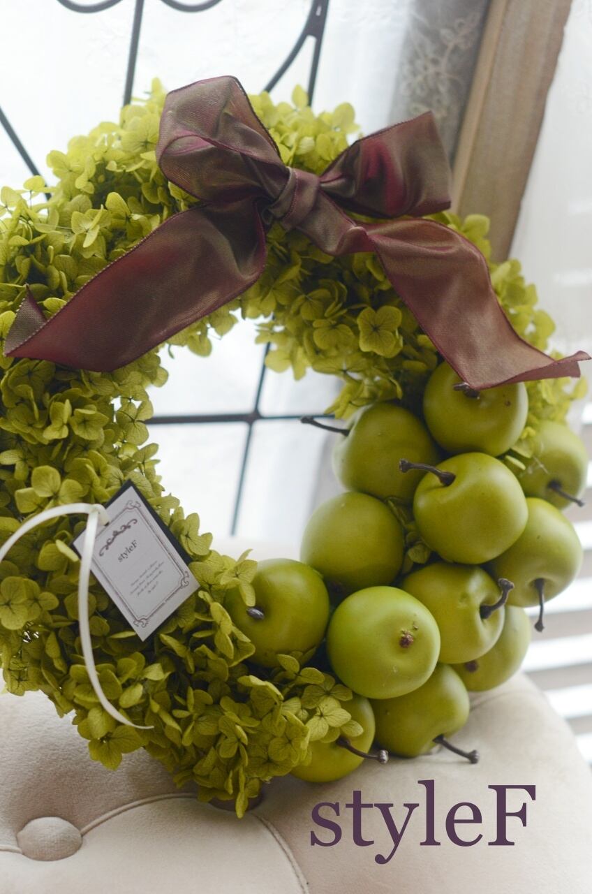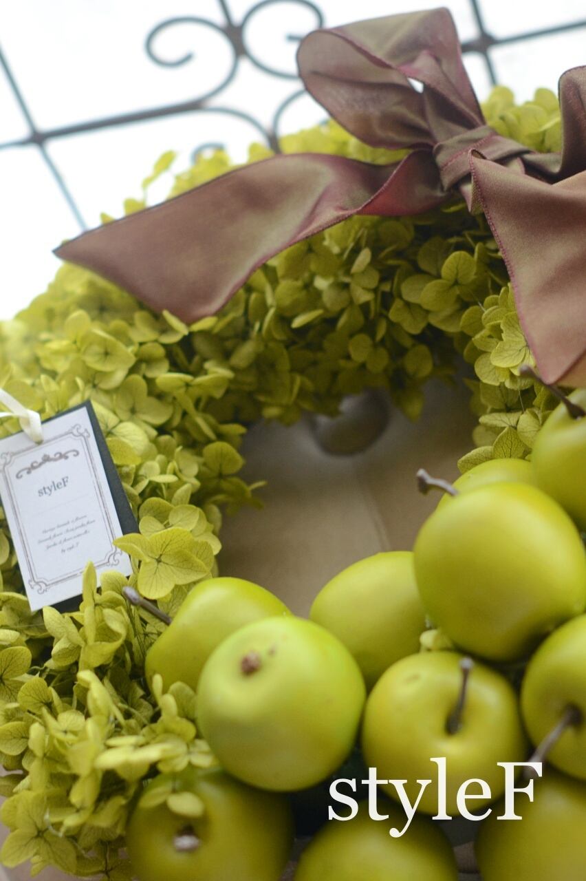 紫陽花リース グリーン&アップル/プリザーブドフラワー/インテリア/フラワーギフト/新築祝い/結婚祝い
