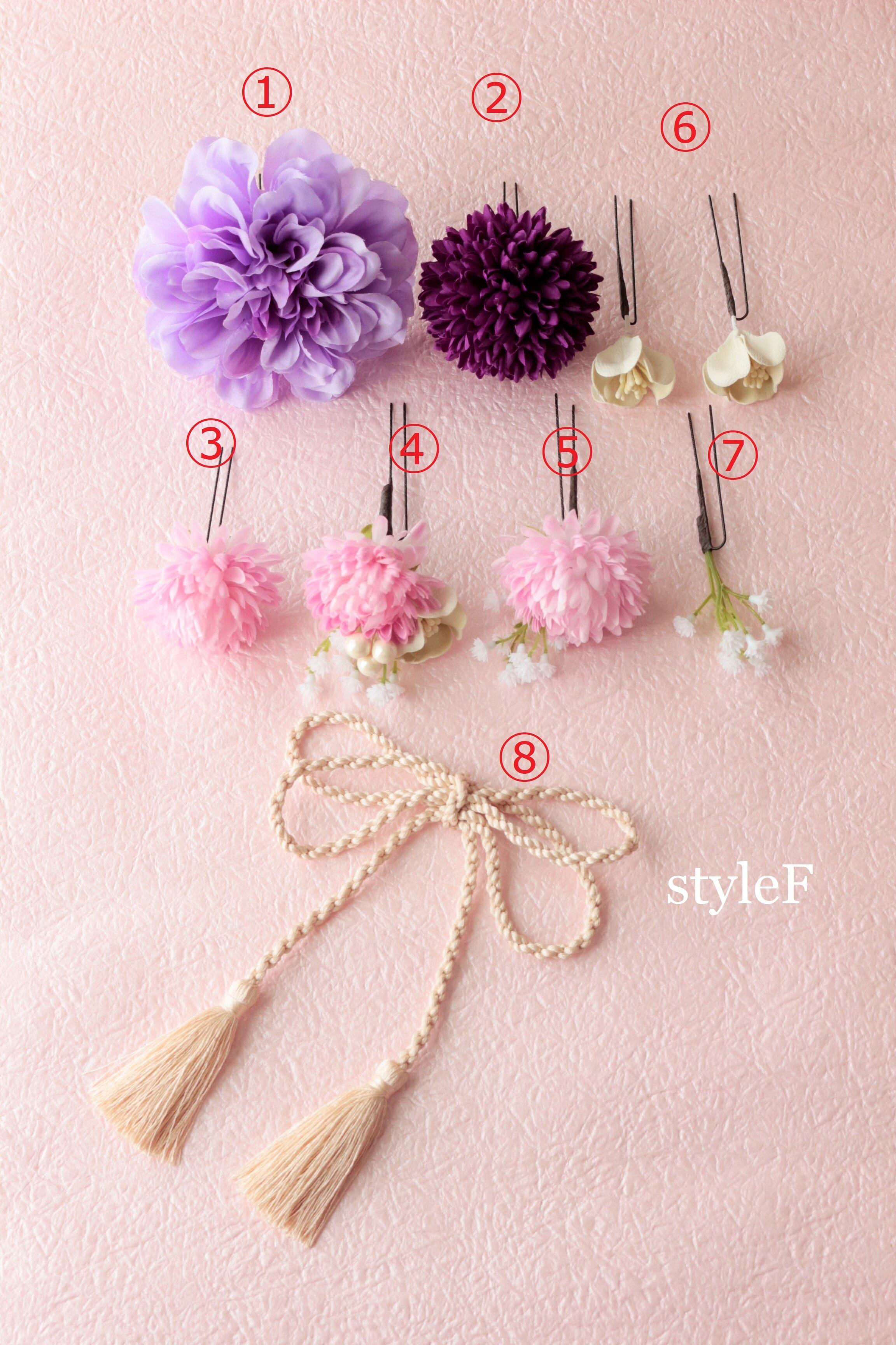 ◆セット内容(花材8パーツ、組紐1本、予備のUピン2本)