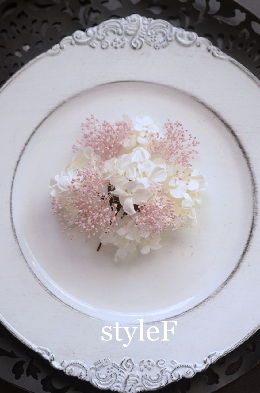 ヘッドパーツあじさい×かすみそう(ホワイト×ピンクベージュ)/ヘアパーツ/髪飾り/プリザーブドフラワー/成人式/卒業式/結婚式